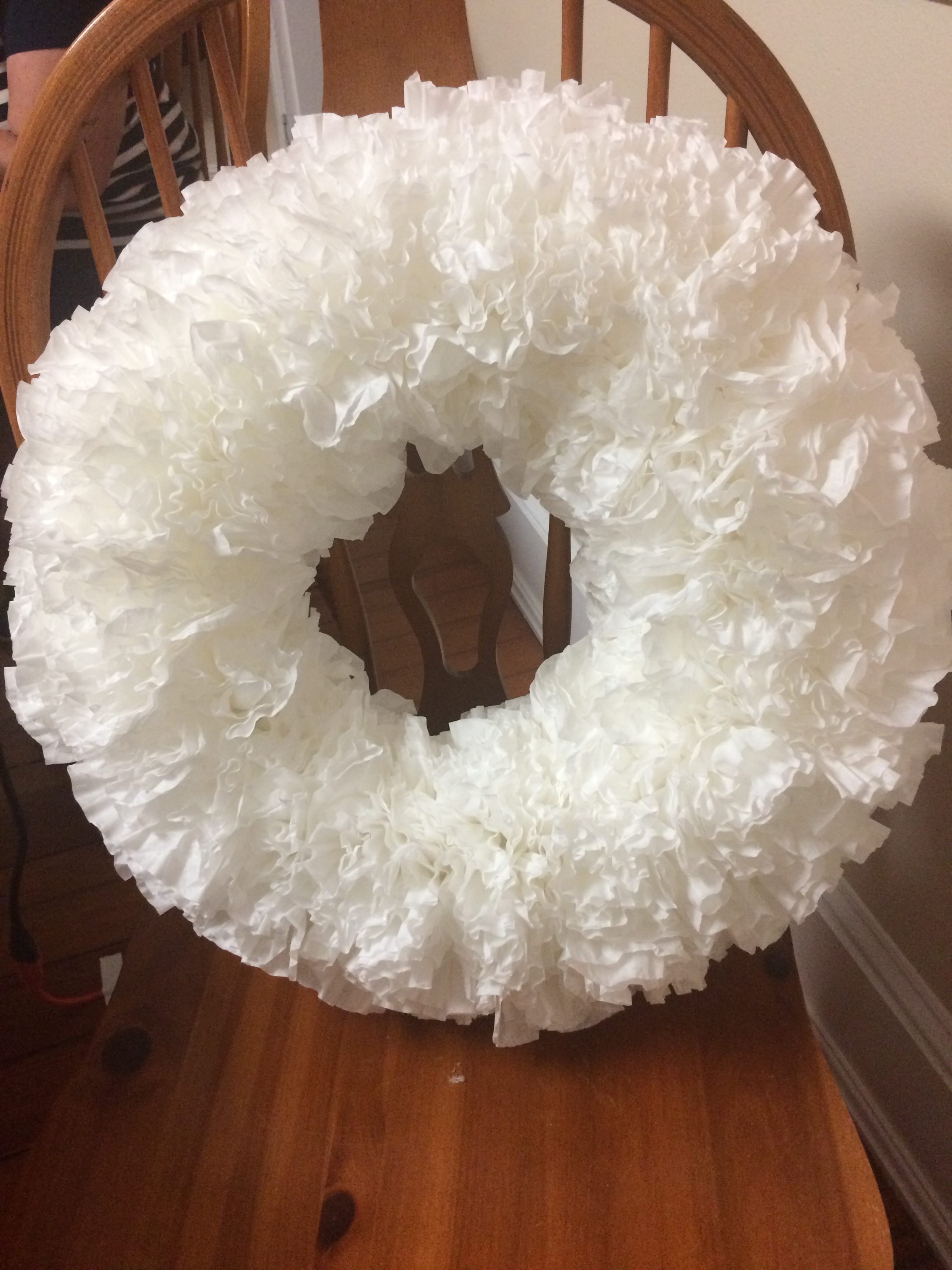 My daughter Jennifer has a store in Berryville, VA called Create N Take that teaches arts and craft classes. On Saturday we took this class on how to make a wreath from coffee filters and look how it turned out!!