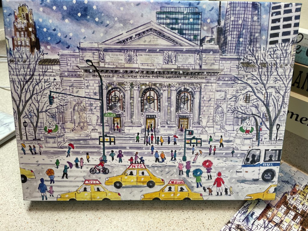 NYC Library Puzzle Posted on January 13, 2023 by opesopinions This puzzle was hard with all the white and snow, but it was still fun! The poster is small, but still helpful. Books, Library, Snow, – what more could you want? Share this: Click to email a link to a friend (Opens in new window) Email Click to print (Opens in new window) Print Click to share on LinkedIn (Opens in new window) LinkedIn Click to share on Reddit (Opens in new window) Reddit Click to share on Tumblr (Opens in new window) Tumblr Click to share on Pinterest (Opens in new window) Pinterest Click to share on X (Opens in new window) X Click to share on Facebook (Opens in new window) Facebook Click to share on Pocket (Opens in new window) Pocket Like Loading... Related