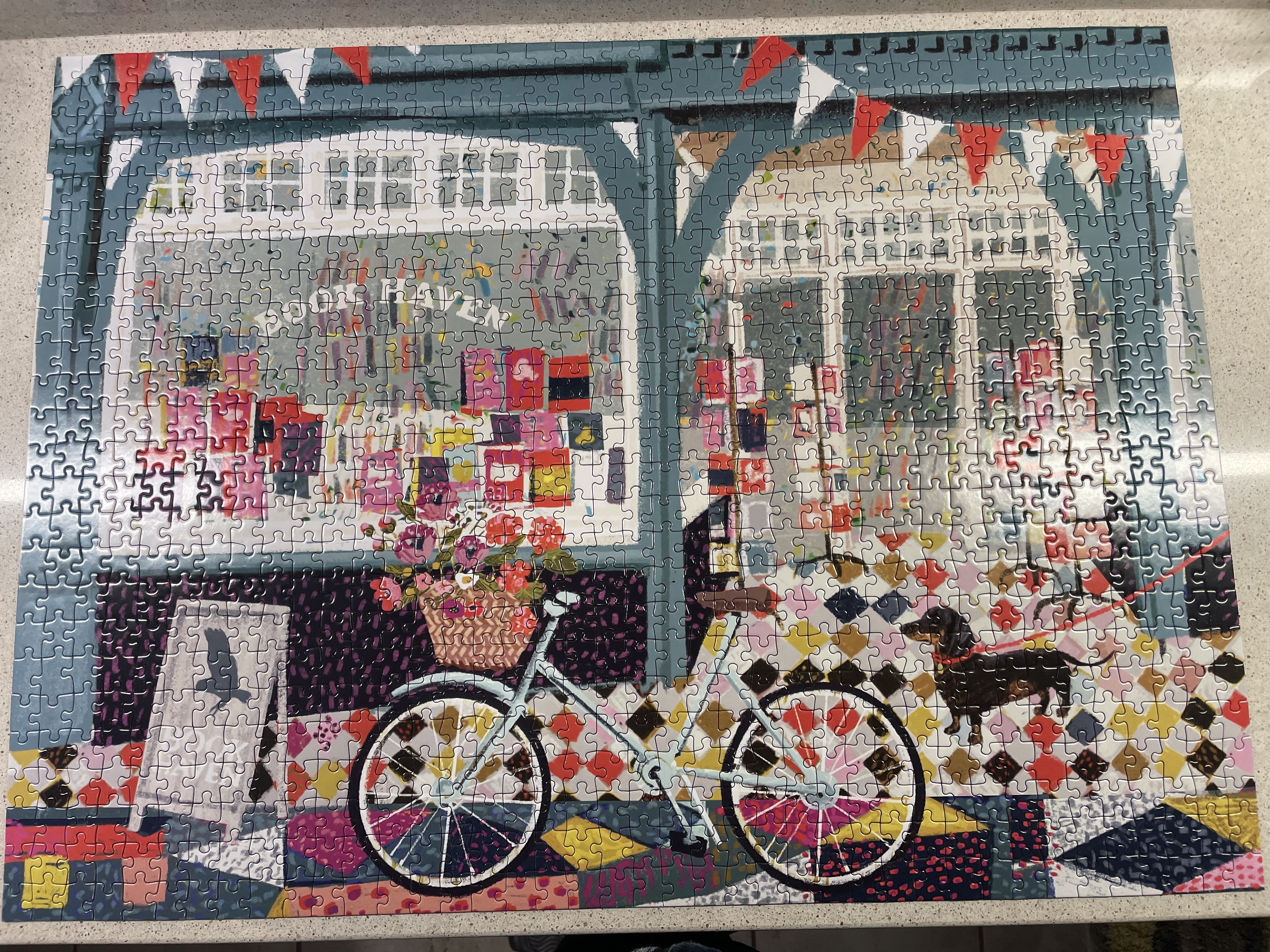I love this puzzle, it has my favorite things. Books, a bike, and a dog!