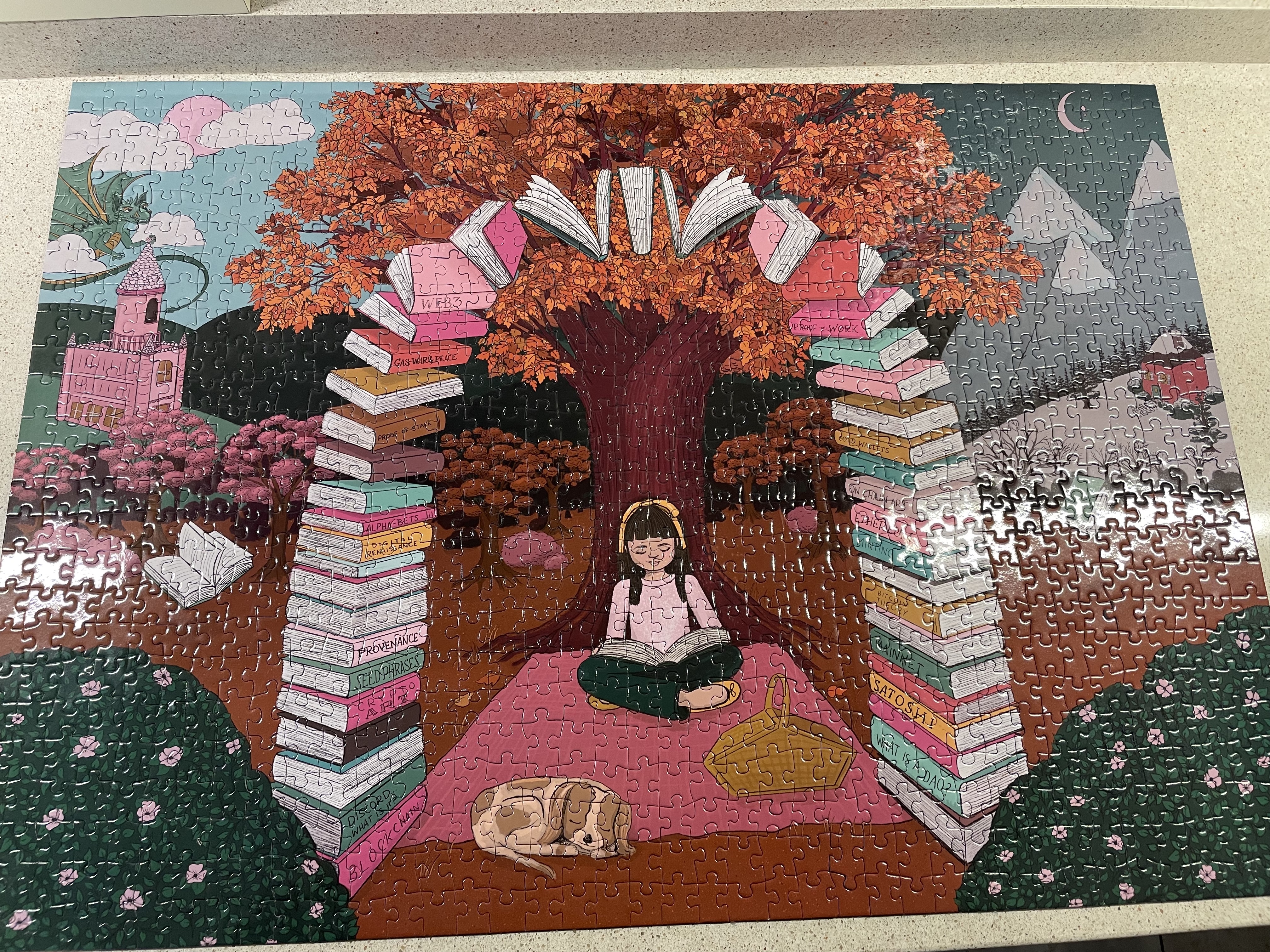 Book Puzzle Posted on September 1, 2023 by opesopinions My favorite past times combined – a good book and a good puzzle! This is the poster that came with the puzzle. This is the finished puzzle. This one was a little shinny and the pieces were a little thick, but it was still fun! Share this: Click to email a link to a friend (Opens in new window) Email Click to print (Opens in new window) Print Click to share on LinkedIn (Opens in new window) LinkedIn Click to share on Reddit (Opens in new window) Reddit Click to share on Tumblr (Opens in new window) Tumblr Click to share on Pinterest (Opens in new window) Pinterest Click to share on X (Opens in new window) X Click to share on Facebook (Opens in new window) Facebook Click to share on Pocket (Opens in new window) Pocket Like Loading... Related
