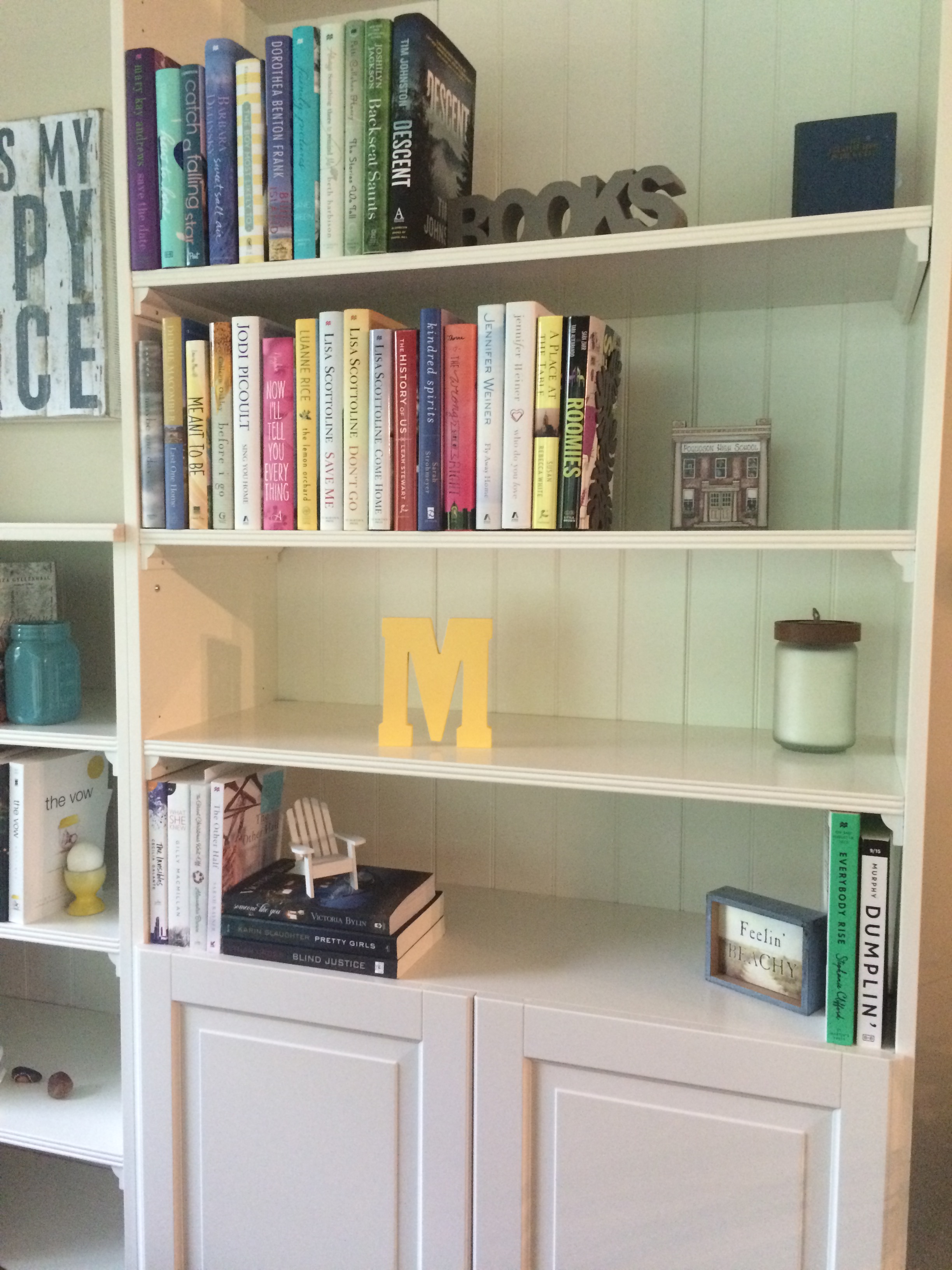 Here is the current state of my bookshelf.  I think I will be rearranging my books soon.  I would love to hear your thought process for your books.  I would also love to see pictures of your bookshelves.