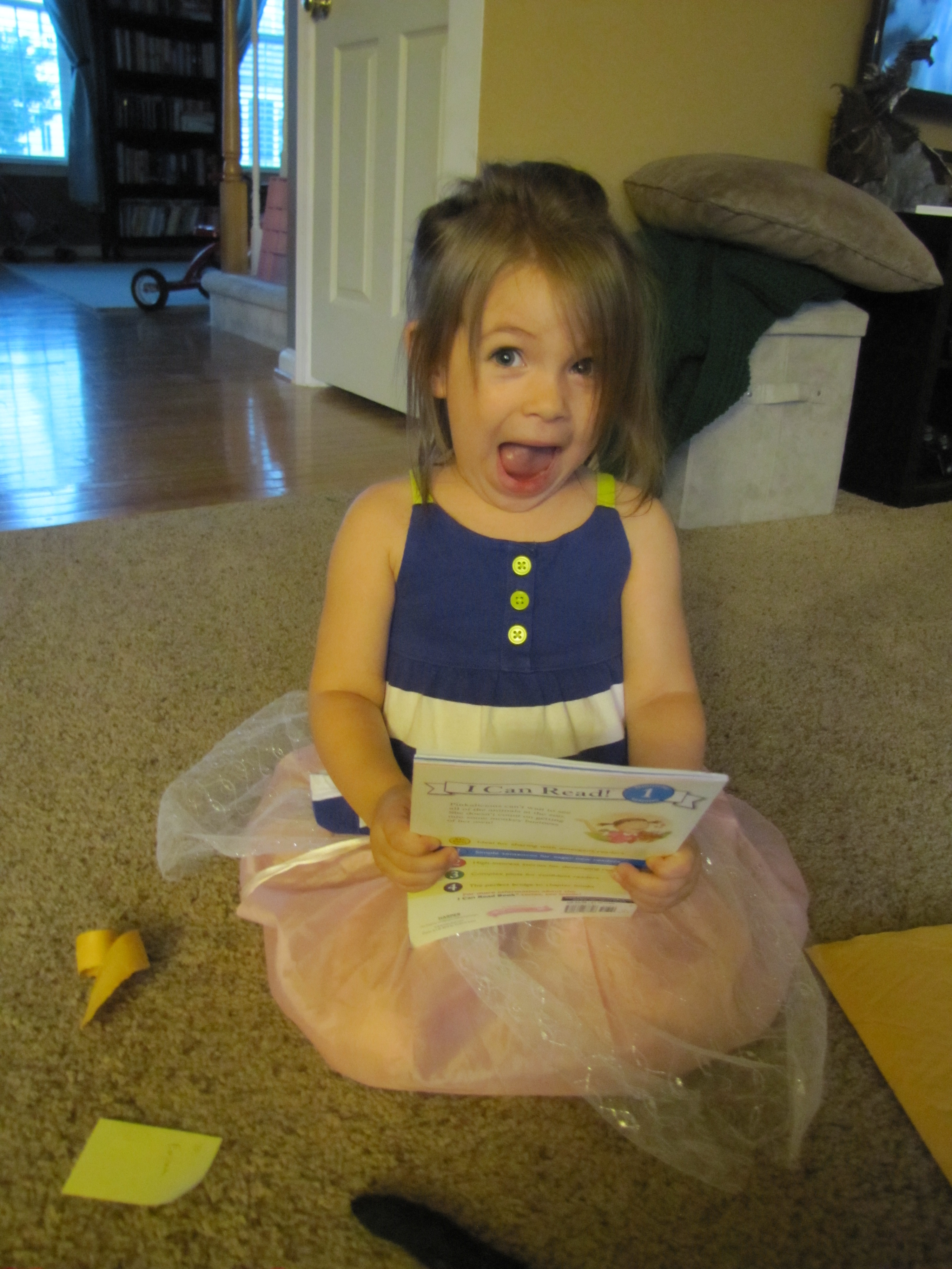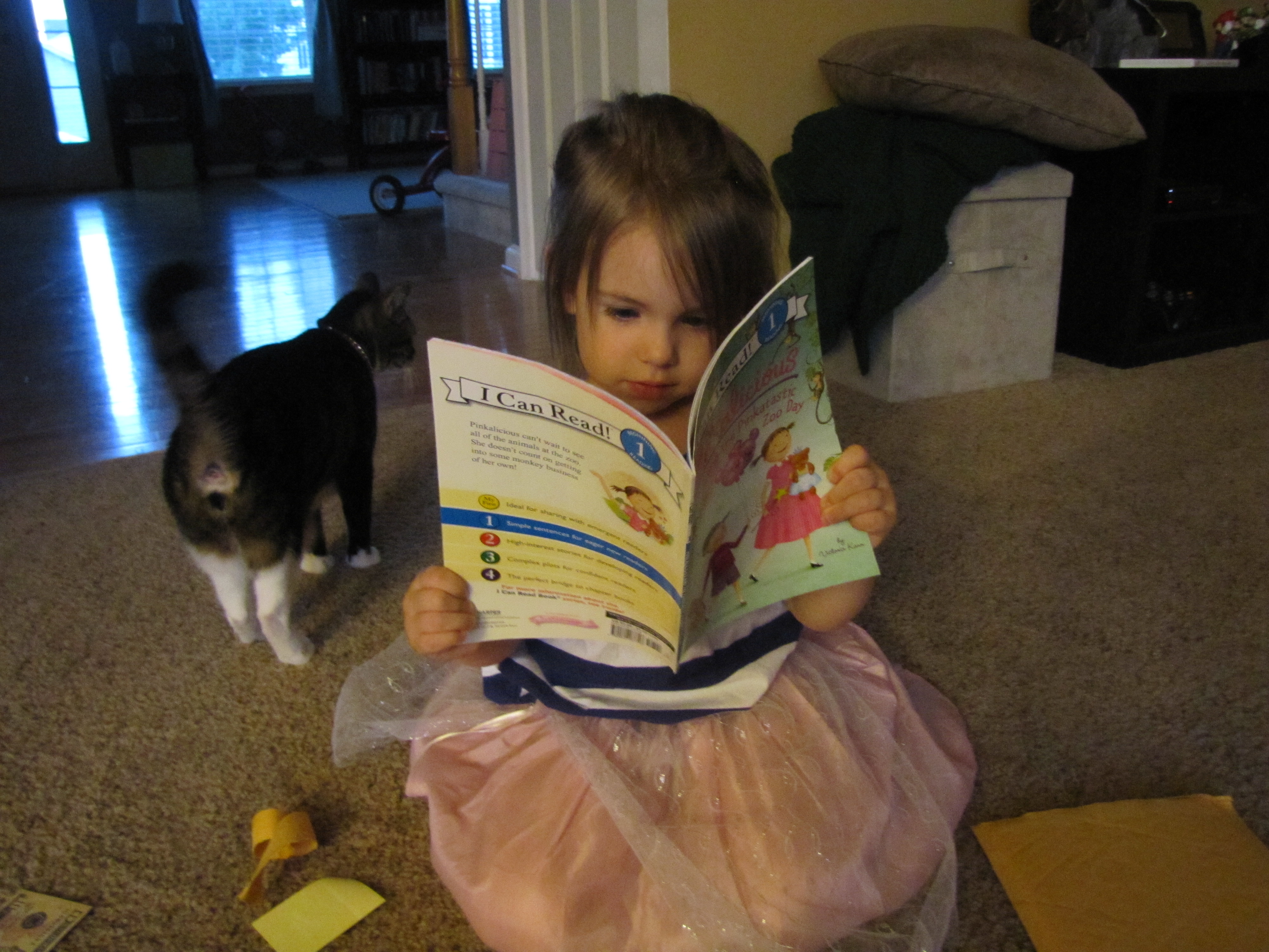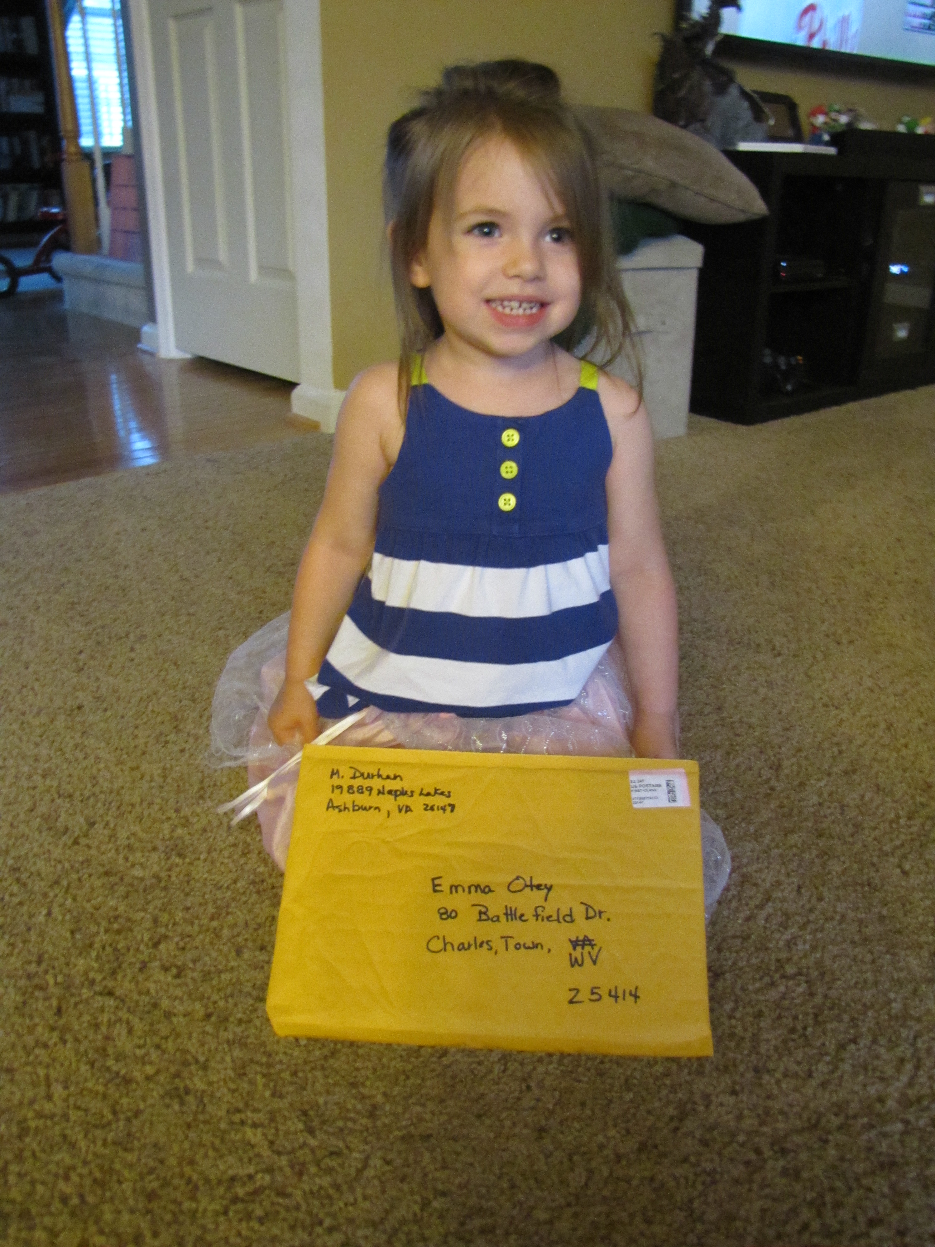 I decided she needed to receive a book herself in the mail. The following pictures are enjoyment of that package from me.